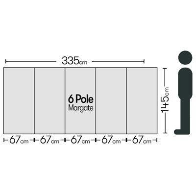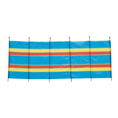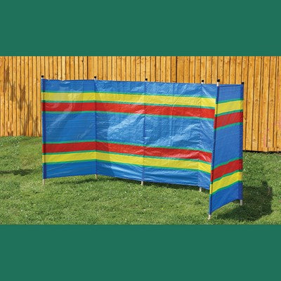 Excellent value multi-coloured polythene windbreak with wooden poles. Keeps the wind at bay and is highly visible so it's easier to see from a distance.