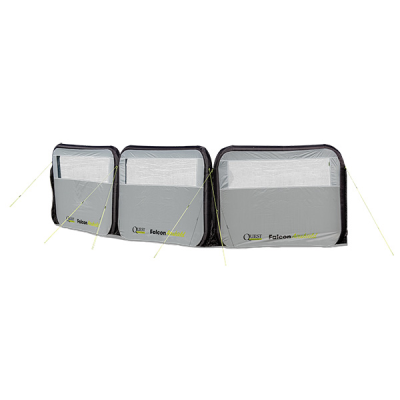 This is the all new Falcon AirShield. It is a modular air windbreak. Modular as every panel zips together, even when you purchase the 3 panel main unit it still comes as three separate panels that you can zip together, allowing you to use as many (even as few as 1) as you actually want.