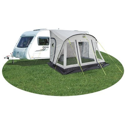 This awning uses the minimal quick-fit frame system which is very small, especially when packed away. The lightweight fabric also allows it to be rolled and folded to a very small size. These two options together mean that these awnings pack down to a very small pack size, much smaller than its air rivals and smaller than you would think for an awning. This makes the awning easier to store away when not in use and easier to pack into your vehicle when loading ready for your break.